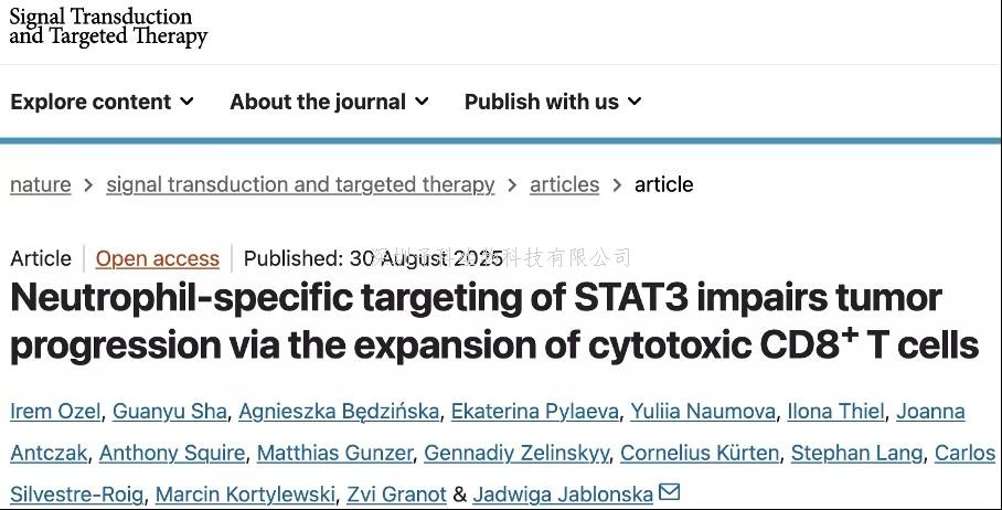 [4].Ozel I, Sha G, Będzińska A, et al. Neutrophil-specific targeting of STAT3 impairs tumor progression via the expansion of cytotoxic CD8+ T cells. Signal Transduct Target Ther. 2025;10(1):279. Published 2025 Aug 30. doi:10.1038/s41392-025-02363-z