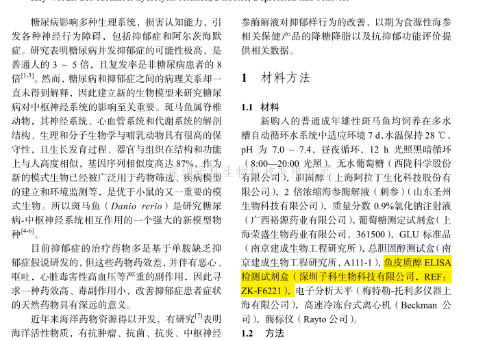 文章名称:Effect of Sea Cucumber Hydrolysis Extract on Depression-like Behavior of