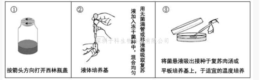 6、 复苏后的菌种一般宜传代(如:斜面传代)2~3次后使用,菌种传代5次后建议弃置。